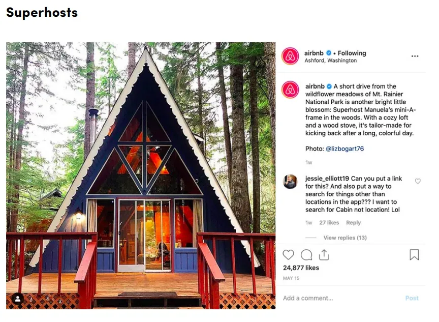 Este é um exemplo de uma das postagens temáticas de “Superhost” do Airbnb. A imagem instantaneamente prende sua atenção.