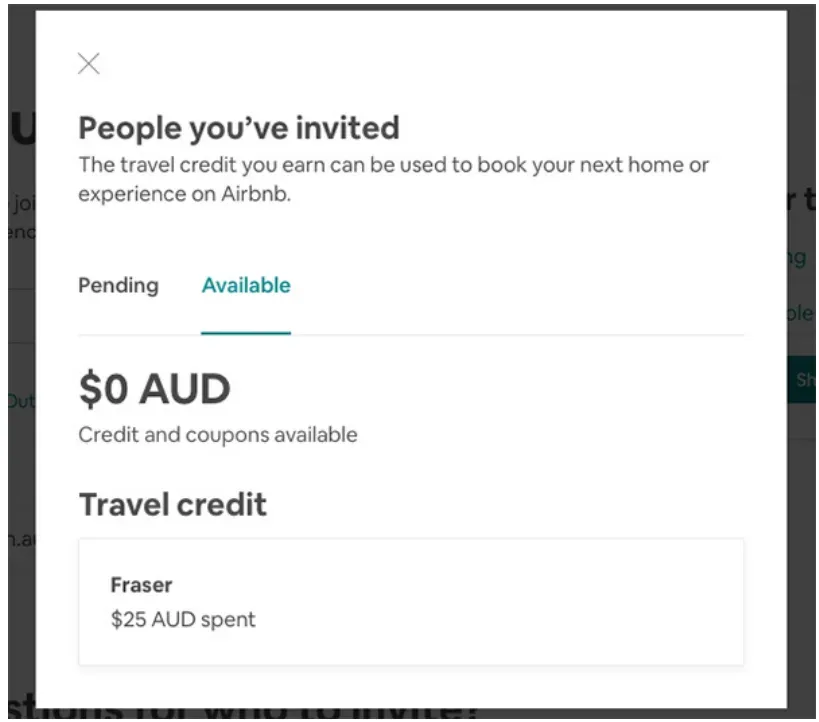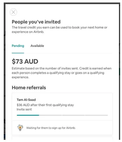 Os pendentes são créditos que o Airbnb estima que você possa receber baseado na quantidade de convites que enviou.