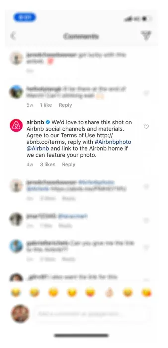 Eu gosto da estratégia de UGC deles e acho que eles fizeram um bom trabalho ao aproveitar isso para o conteúdo, em vez de usar imagens filmadas por profissionais, o que não seria adequado para a plataforma. Se você estava se perguntando como eles tem permissão para compartilhar a imagem de um usuário, aqui está um exemplo: