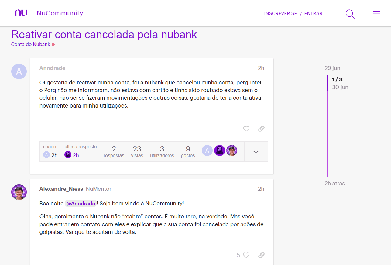 NuCommunity – O Nubank também criou uma comunidade para os fãs do roxinho. Lá é possível tirar dúvidas, compartilhar aprendizados ou até mesmo histórias envolvendo o banco.