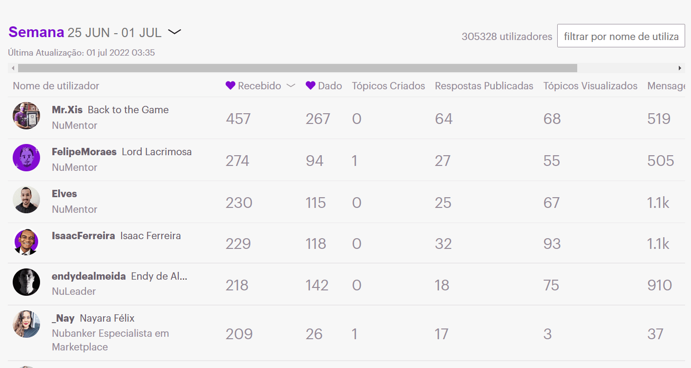 Dentro da comunidade, tem um grupo exclusivo com 30 pessoas que recebem o selo de mentores do Nubank, geralmente elas ajudam a tirar a dúvida de outras pessoas dentro do fórum de discussão. O time do Nubank também tem contato diários com esses membros mais fanáticos, que ajudam principalmente como community managers.