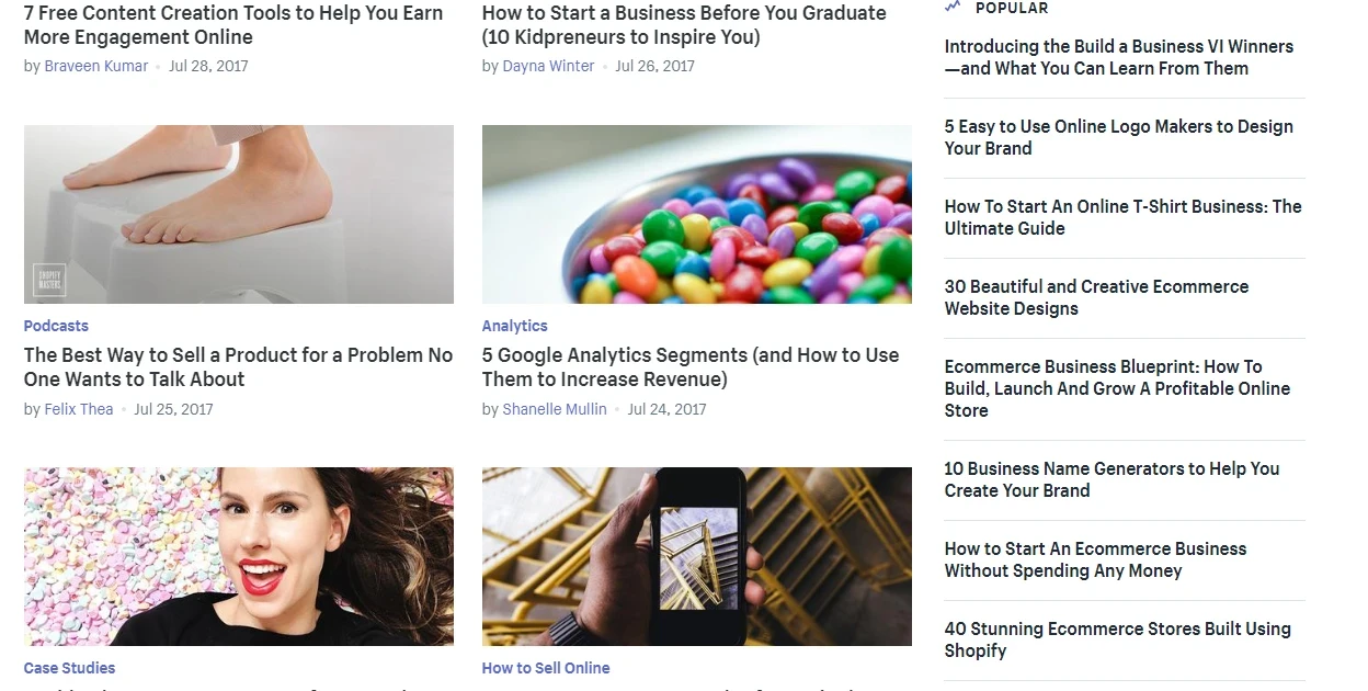 Eles criaram um blog que é alimentado com pelo menos uma curadoria de conteúdos por dia, criados pelos usuários da Shopify e também pelo time de marketing da empresa. A página do blog chegou a bater 27 milhões de visitas no ano passado.