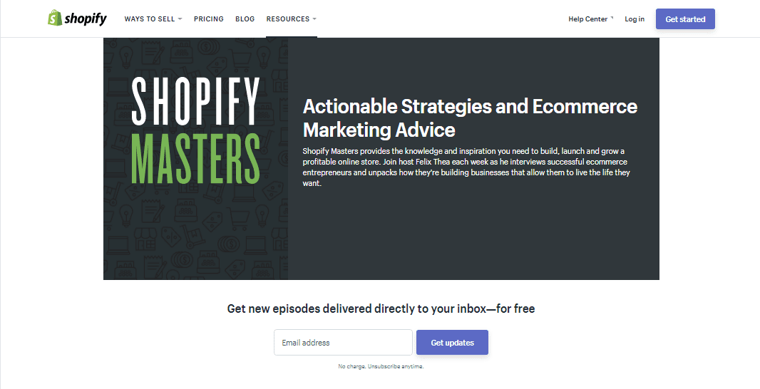 Outro canal que eles estão explorando, é dos podcasts. Eles lançaram o Shopify Masters, com objetivo de passar para os ouvintes dicas acionáveis sobre como começar uma loja, além de entrevistar referências. O podcast já conta com mais de 1.5 milhões de reproduções