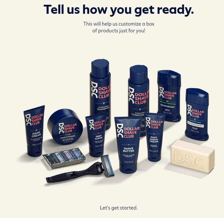 A Dollar Shave Club é uma marca jovem, inteligente, elegante e divertida. Quando você se junta ao “clube”, você não está apenas assinando para receber navalhas e lâminas de baixo custo na sua casa, você está investindo no “prazer” mensal que vem junto.