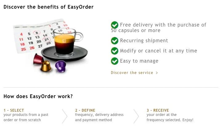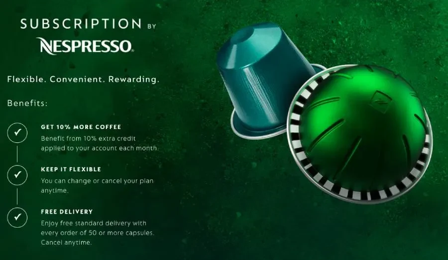 O formato de assinatura que eles criaram recompensam seus clientes com créditos todos os meses em que eles se logam no site da Nespresso e escolhem um novo sabor de cápsula para comprar