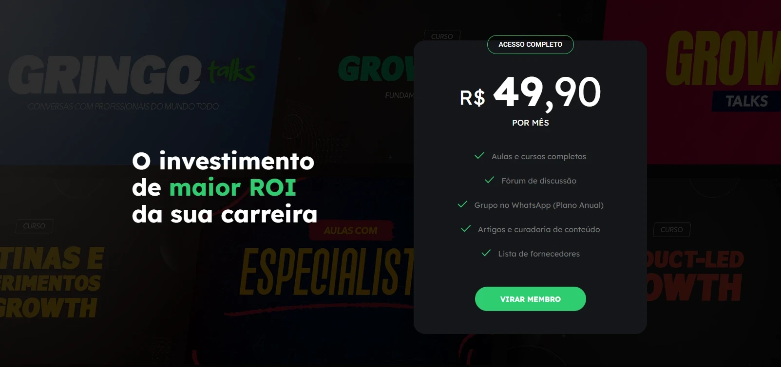 A GLA é a plataforma de educação em Growth mais completa e acessível do mercado, onde você aprende e se conecta com os melhores profissionais. Tudo isso por R$49,90/mês. Uma bagatela.