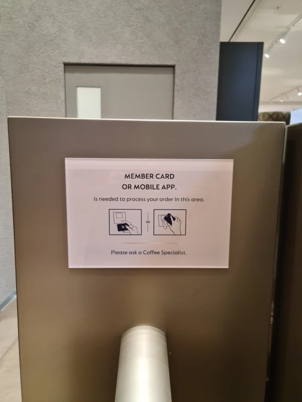 Por exemplo, os checkouts de autoatendimento que eles possuem nas loja são apenas para membros. Lá eles pedem que seus assinantes finalizem a compra pela sua conta da Nespresso, fazendo eles abrirem o app e atribuírem o pedido ao histórico do usuário.