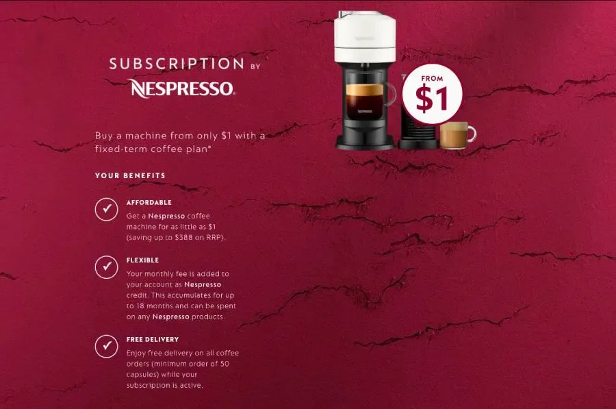 Um bom exemplo disso é uma promoção que eles fizeram em que eles venderiam um de seus modelos de máquina de café por apenas R$1 se o cliente assinasse o plano de assinatura da empresa por 12 meses.